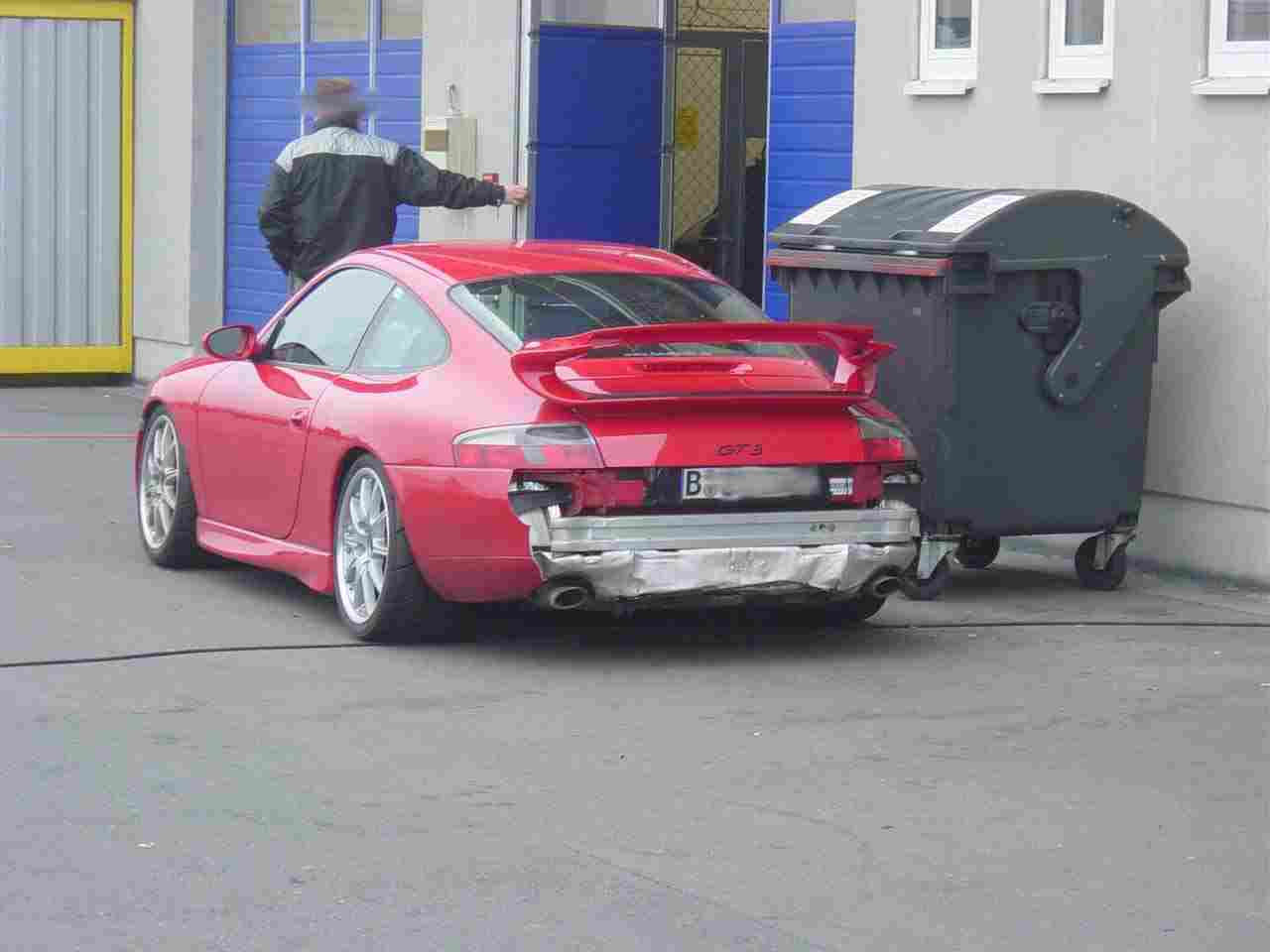 mit!, erster echter Unfall auf der Strecke weil Porschefahrer denken
